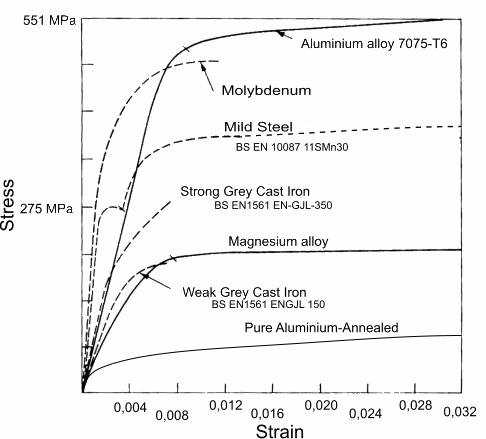 The shape of the Stress/Strain curve for different materials can be completely different. They can useful in providing insight into how the material will behave in your application. Here are a few material examples: