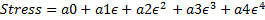 Manufacturers of Wire and Self-supporting Cables for Power or Communication purposes are typically asked to provide fourth-order polynomial equations that describe the product's Stress/Strain behavior. These polynomials are expected to be curve-fitted to actual Stress/Strain test results for validation purposes. This mathematical approximation of the Stress/Strain curves is essential for accurate computer modeling of Sags and Tensions. They are considered valid up to a strain of 0.5%. After that point a straight-line projection (tangent) to the curve is extended, if required. This curve is called the "Initial Curve" as it represents the material's response to initial stresses when first put into service.